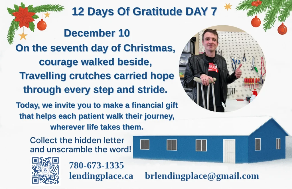 Day 7 🎄 On the seventh day of Christmas, courage walked beside, Travelling crutches carried hope through every step and stride. Today, we invite you to make a financial gift that helps each patient walk their journey—wherever life takes them. lendingplace.ca/#to-donate Sometimes equipment from the Lending Place travels farther than we ever imagined. One pair